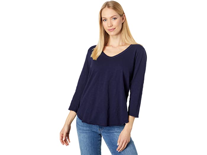(取寄) モッドオードック レディース スラブ ジャージ 3/4 スリーブ Vネック ティー ウィズ カーブ ヘム Mod-o-doc women Slub Jersey 3/4 Sleeve V-Neck Tee with Curved Hem Rare Navy