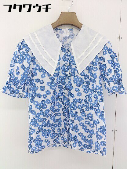 ◇ ◎ Isn't She? イズントシー タグ付 総柄 半袖 シャツ ブラウス ホワイト ネイビー レディース 【中古】