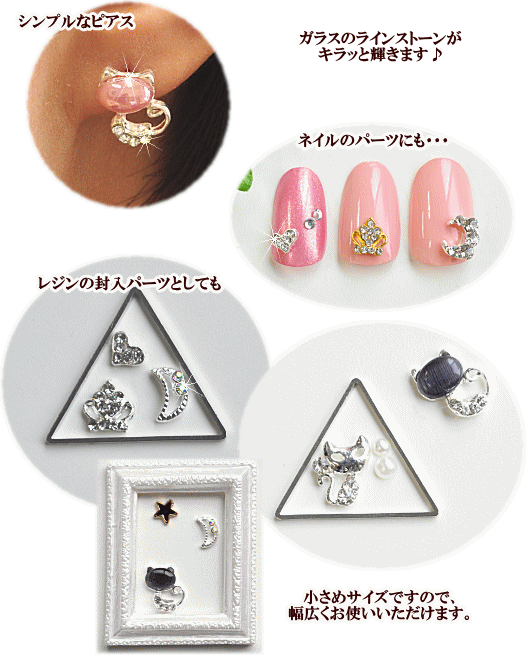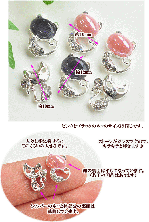 )ネコのデコパーツ3種類 各2個計6個セット小さめサイズがとっても可愛いデコパーツ。