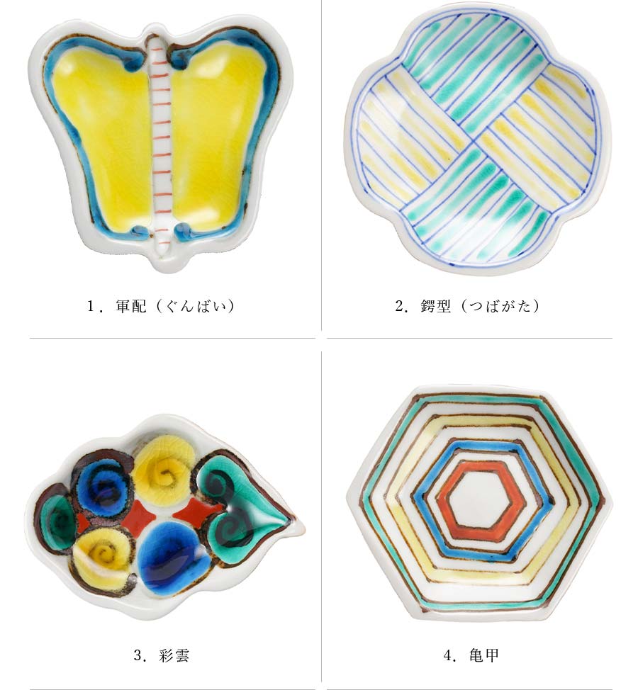 ・九谷焼とは 青、緑、黄などの濃色を多用した華麗な色使いと大胆で斬新な図柄が特色の食器です。