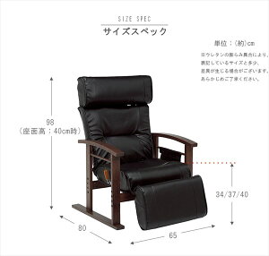 ■サイズ (約)幅65×奥行80〜172×高さ53.5〜112×座面高34/37/40cm ■素材 主材:ラバーウッド、スチールパイプ、ウレタン 張地:PVC ■機能 背:ガス圧無断リクライニング(手元レバー式) 頭部:伸縮式調整 脚部:14段階調整(伸縮機能付) リラックスチェアカテゴリはこちら リラックスチェアカテゴリではいろんなリラックスチェアをご覧いただけます。