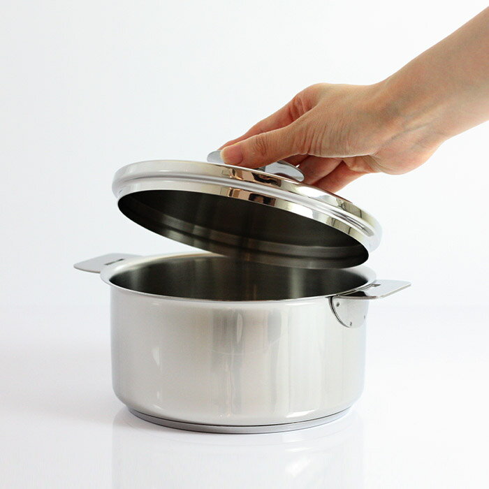 ワンタッチで着脱可能なハンドルやグリップを付けるタイプの鍋なので、収納はわずか鍋ひとつ分のスペースがあればOK! こちらは、2〜3人分の汁物、豆類や小さな野菜の少量水調理、グラッセなどに便利です。